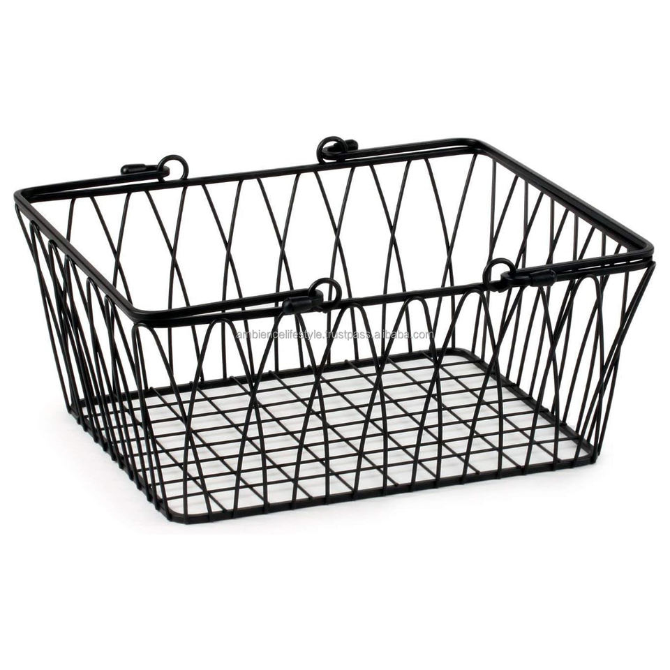 Indian Manufacturer Black Wire Storage Basket Handles Rectangle Kitchen Shelf for Closet Garage-Ambience Lifestyle Enhancement