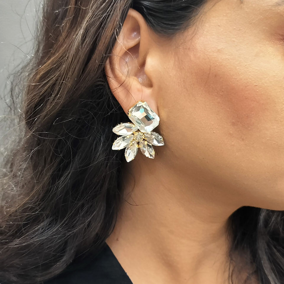 Indian Manufacturer Efulgenz Bridal Crystal Floral Dangle Earrings Austrian Crystal Statement Cubic Zirconia Earrings for Women