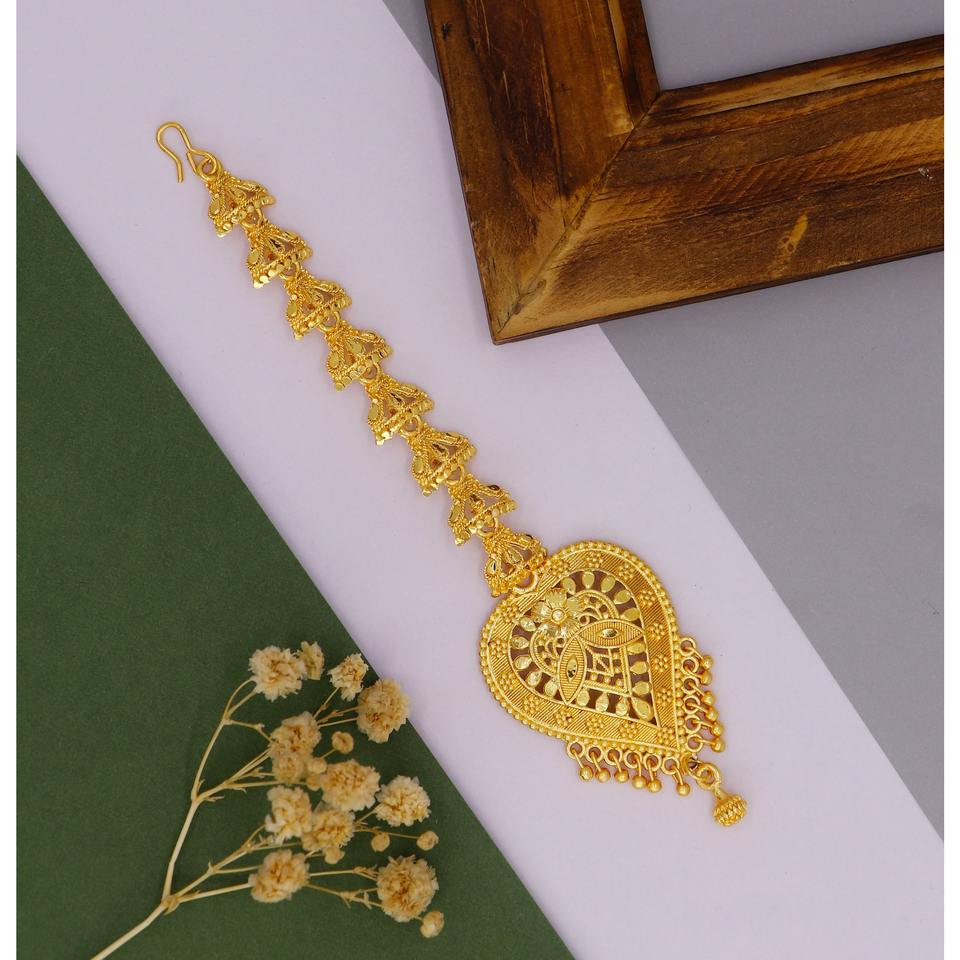 Indian Manufacturer Ethnic Gold Plated Chain Hair Jewelry Maang Tikka Headband Fashionable Forehead Accessory for Girls Women