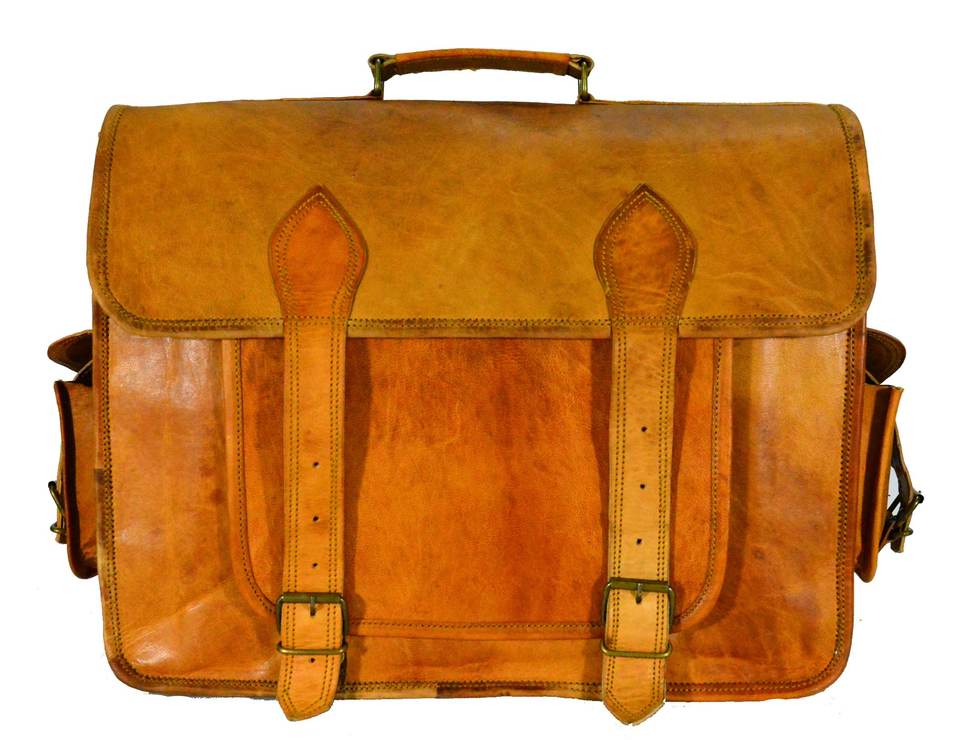 Indian Manufacturer Genuine Leather Light Brown Laptop Sling Messenger Briefcase Bag Single Strap Office Sling Messenger Bag