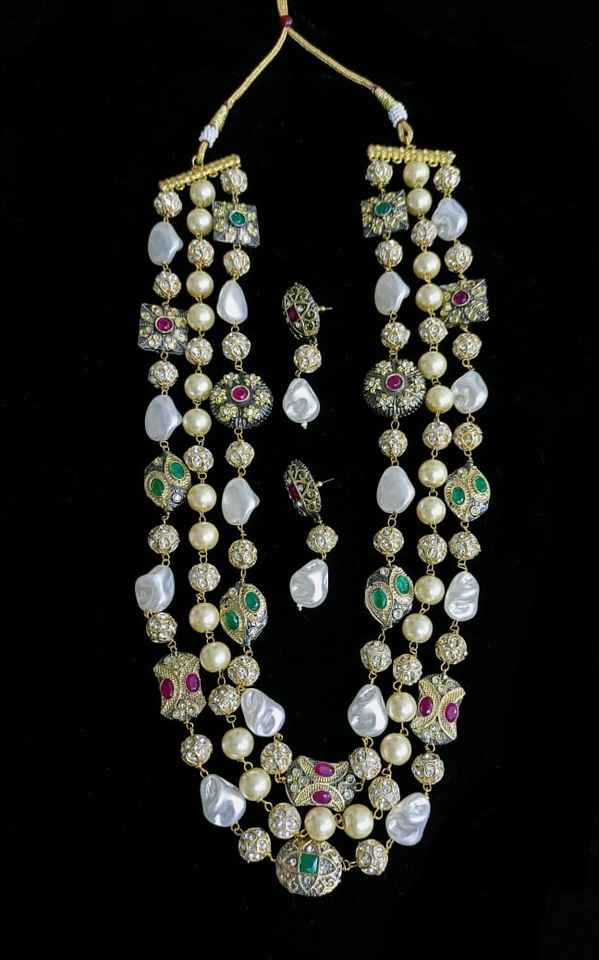 Indian Manufacturer Gold Plated Bollywood Pearl Ethnic Style Wedding Engagement Pearl Mala Necklace Sets