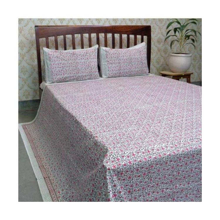 Indian Manufacturer Hand Block Printed 200TC Eco-friendly Cotton Cover Bed Sheets Super King Size Quilt Bedding Bedspreads Set