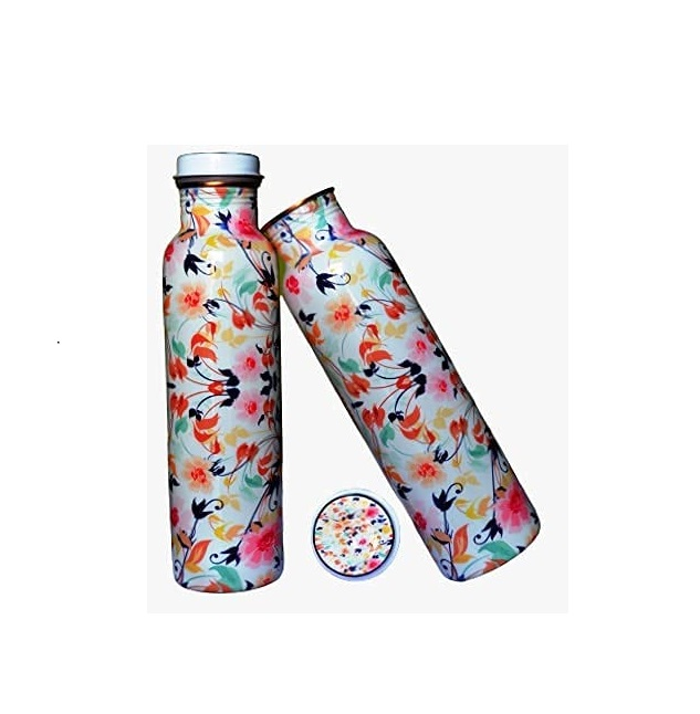 Indian Manufacturer High Quality Lacquer Coated Water Bottle Flower Design Printed Outside Plastic Drinkware for Good Health