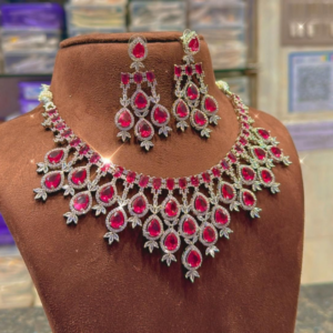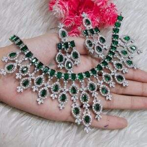 Indian Manufacturer High Quality Silver AD CZ Ethnic Bridal Jewelry Necklace Set With Earrings Choker in Different Stone Color