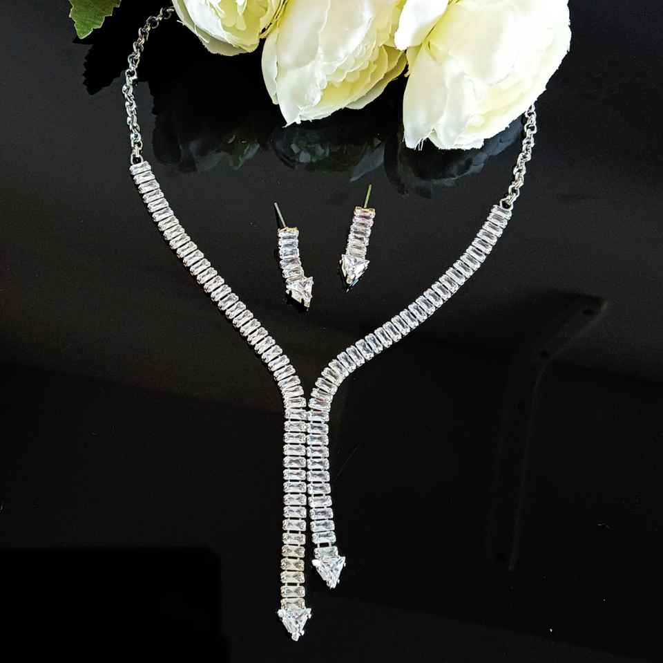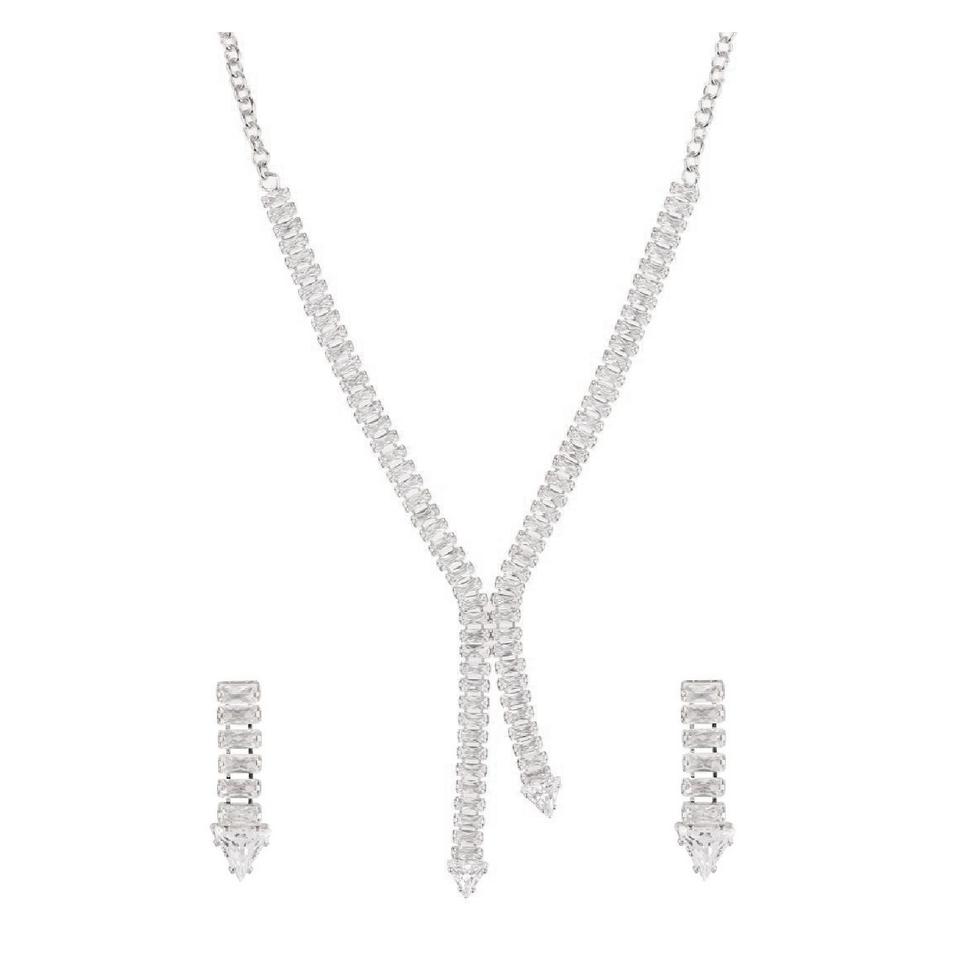 Indian Manufacturer Jewellery Silver Tone Trandy CZ Crystal Choker Party Wear Necklace Set Dangle Earrings Jewelry For Women