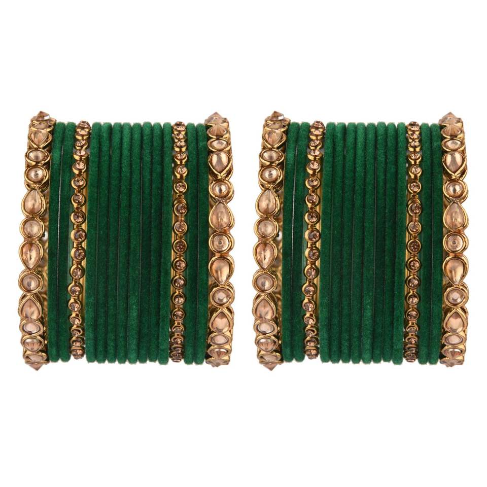 Feature:Embellished with crystals, kundan bangles with set of vevlet bangles