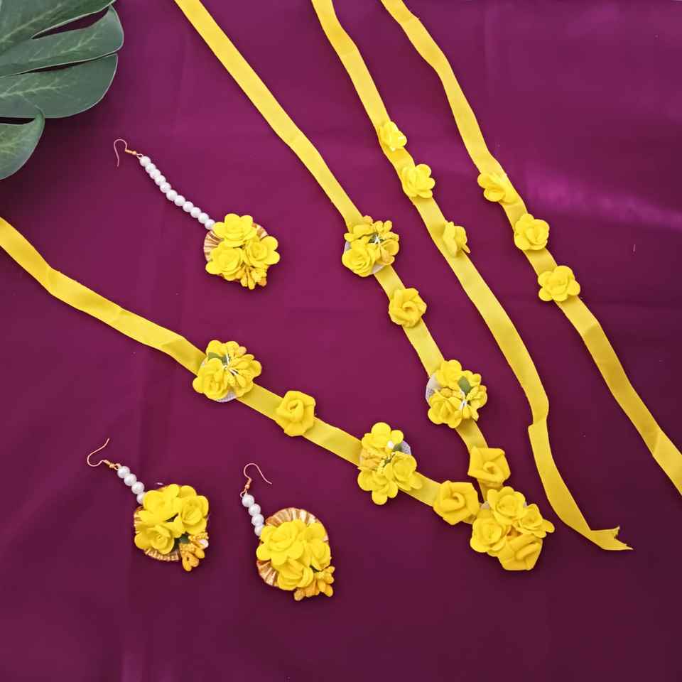 Design:haldi floral designer strand gota patti necklace jewellery set,
