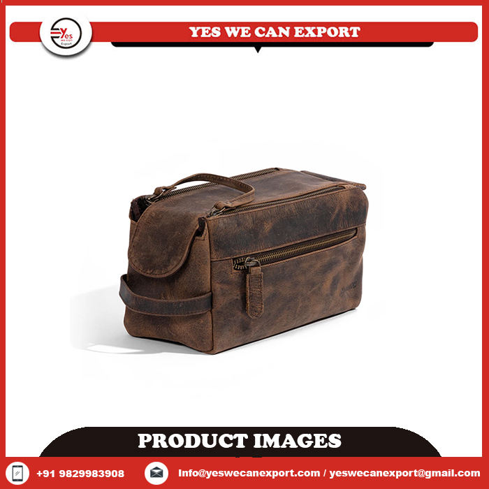 Indian Manufacturer Men'S Cosmetic Bag Pu Leather Genuine Leather Travel Toiletry Bag Shaving Dopp Kit Organizer For Bulk Supply