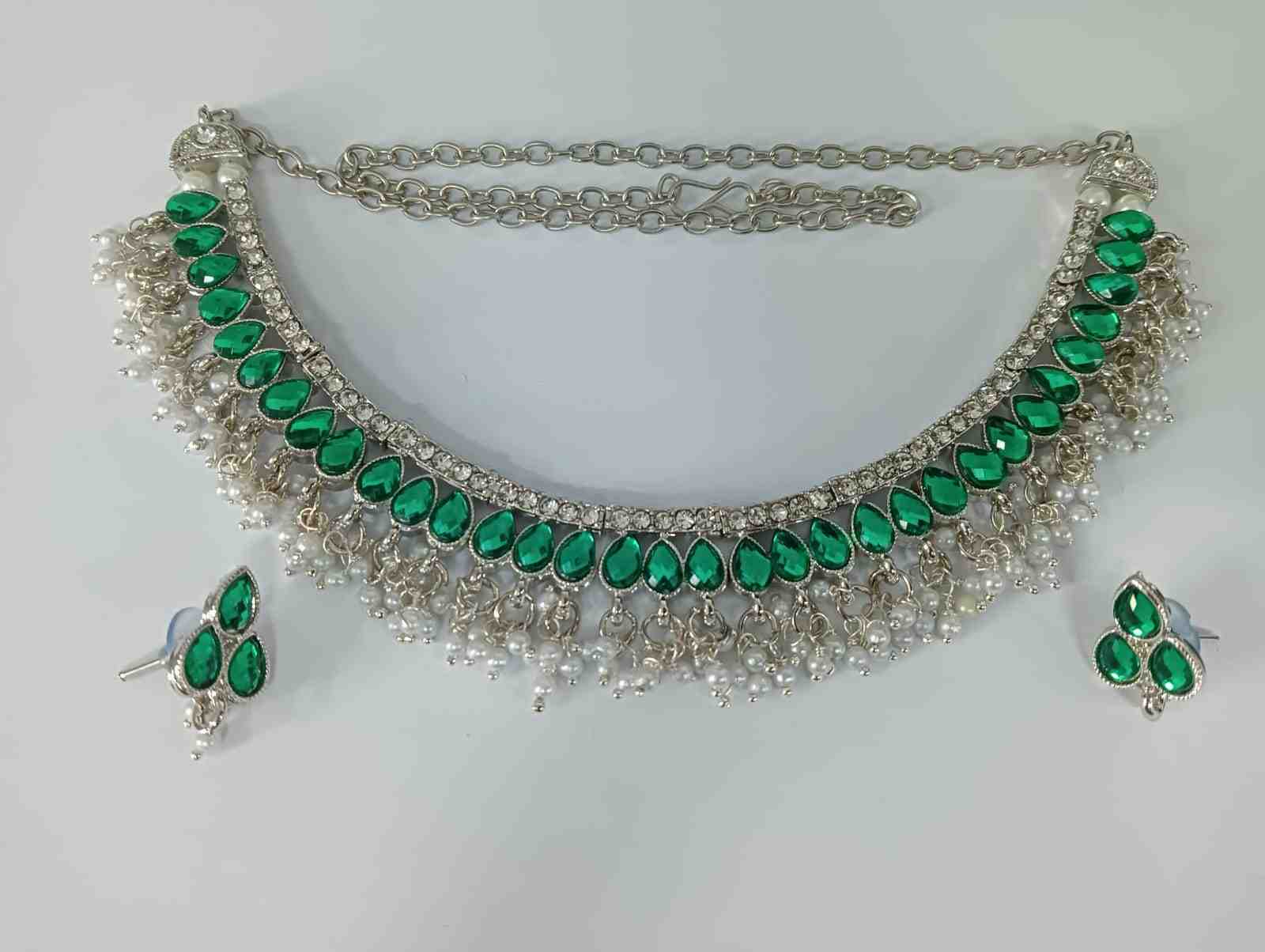 Design:Classic antique designer silver tone choker necklace earring set