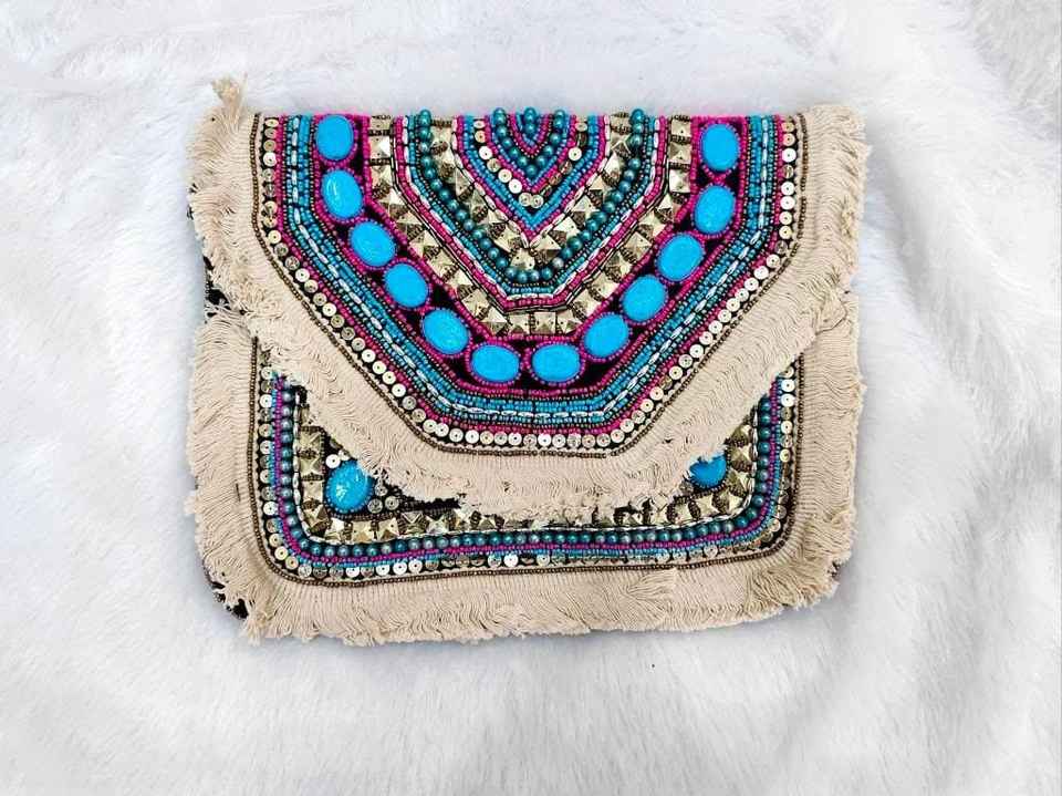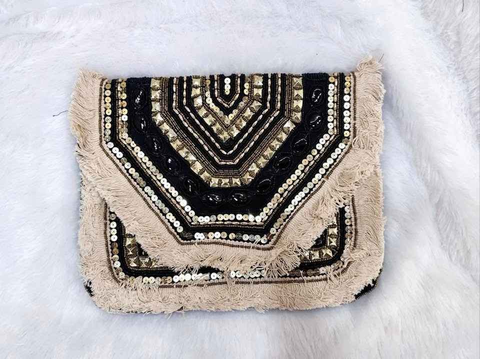 Indian Manufacturer Supplier's Bohemian Style Jute Clutch Bag Long Wallet Embroidery Zipper Beading Shell Tassel for Women
