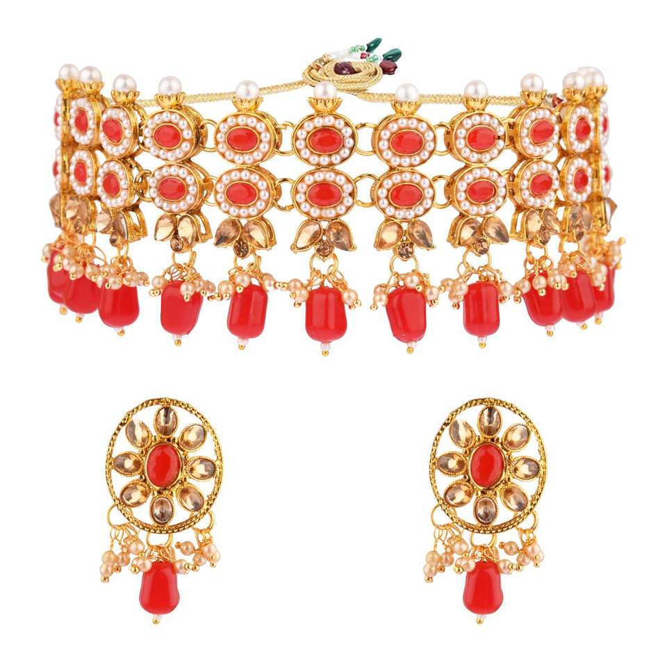 Indian Manufacturer Women's Kundan Crystal Ethnic Jewelry Set Wedding Choker Necklace and Earring with Pearl Stone for Gifts
