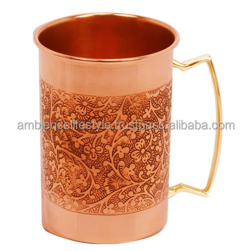Indian Manufacturer of Pure Copper Metal Etching Moscow Mule Mug for Drinking by Ambience Lifestyle