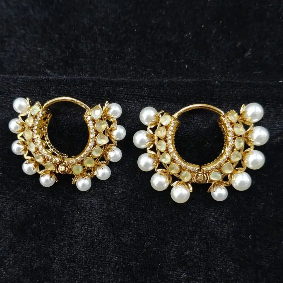 Indian Manufacturer's Ethnic Style AD Brass Chand bali Earrings Set Strand for Women's Wedding Party Wear