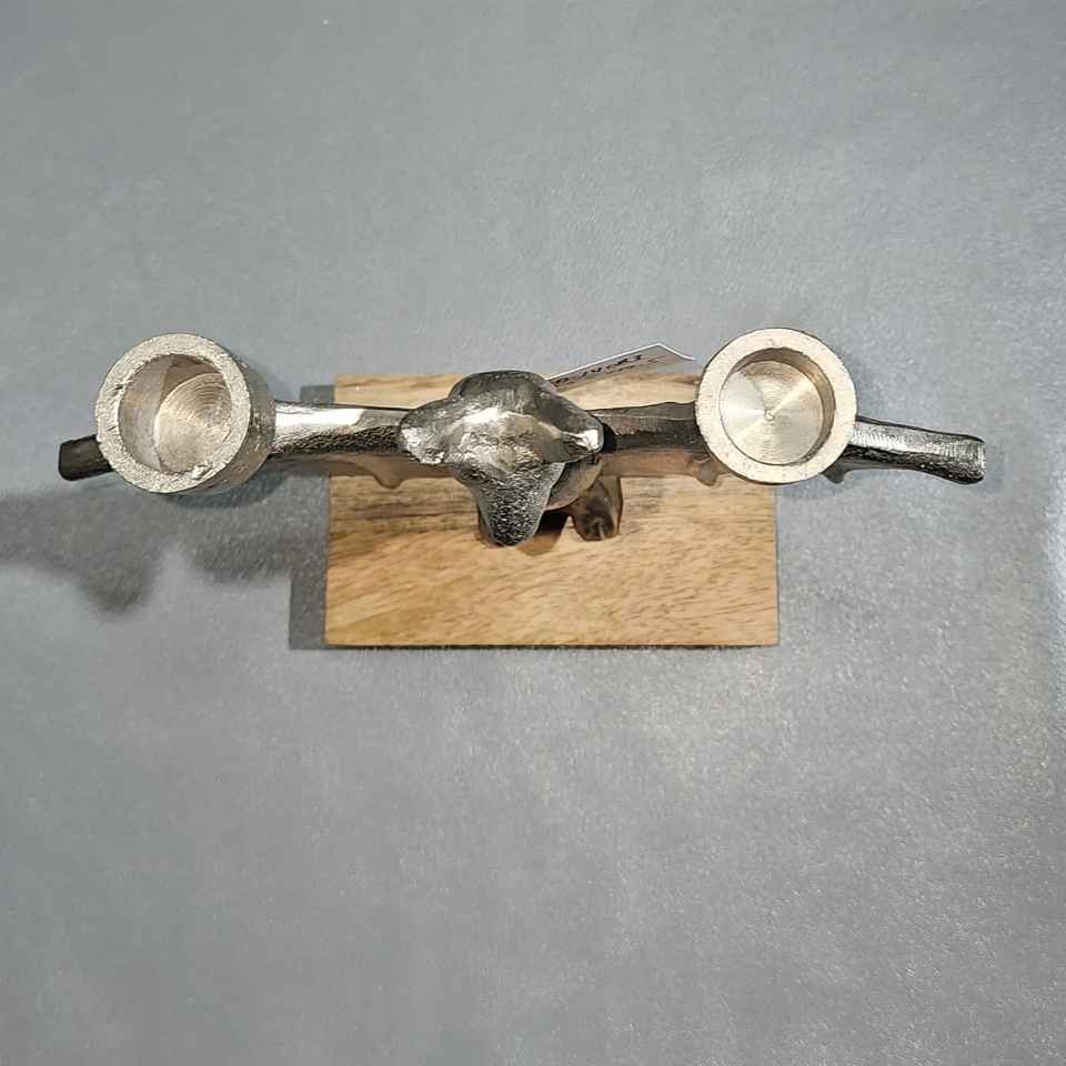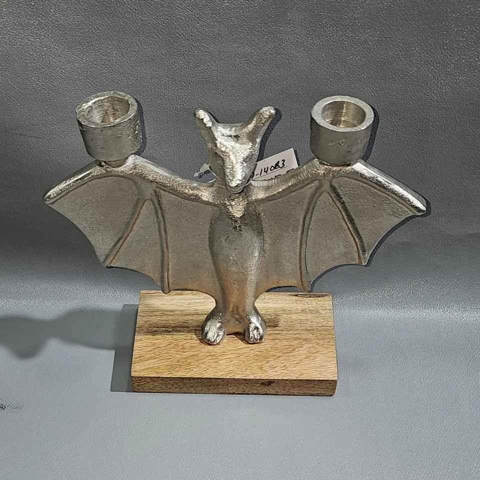 Indian Manufacturer's Halloween Decorative Handmade Aluminum Tea Light Holder Batman Shape Wood Base Home Decor Candle Jars