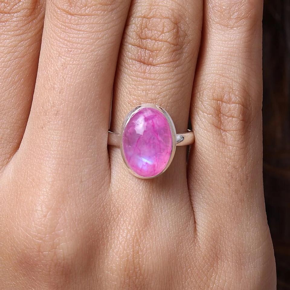 Indian Manufacturer's Handmade 925 Sterling Silver Ring with Natural Pink Moonstone Gemstone Oval Cut Diamond Shape for Weddings
