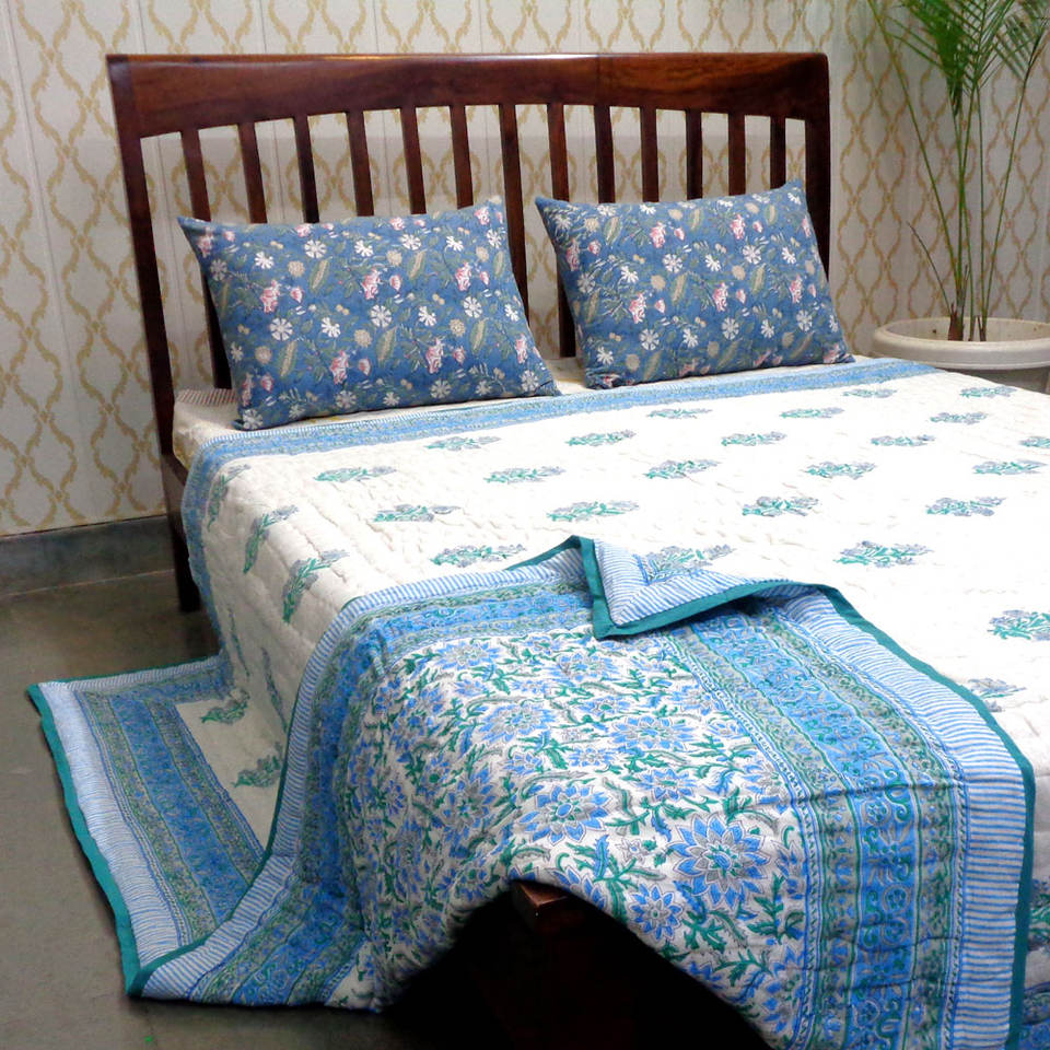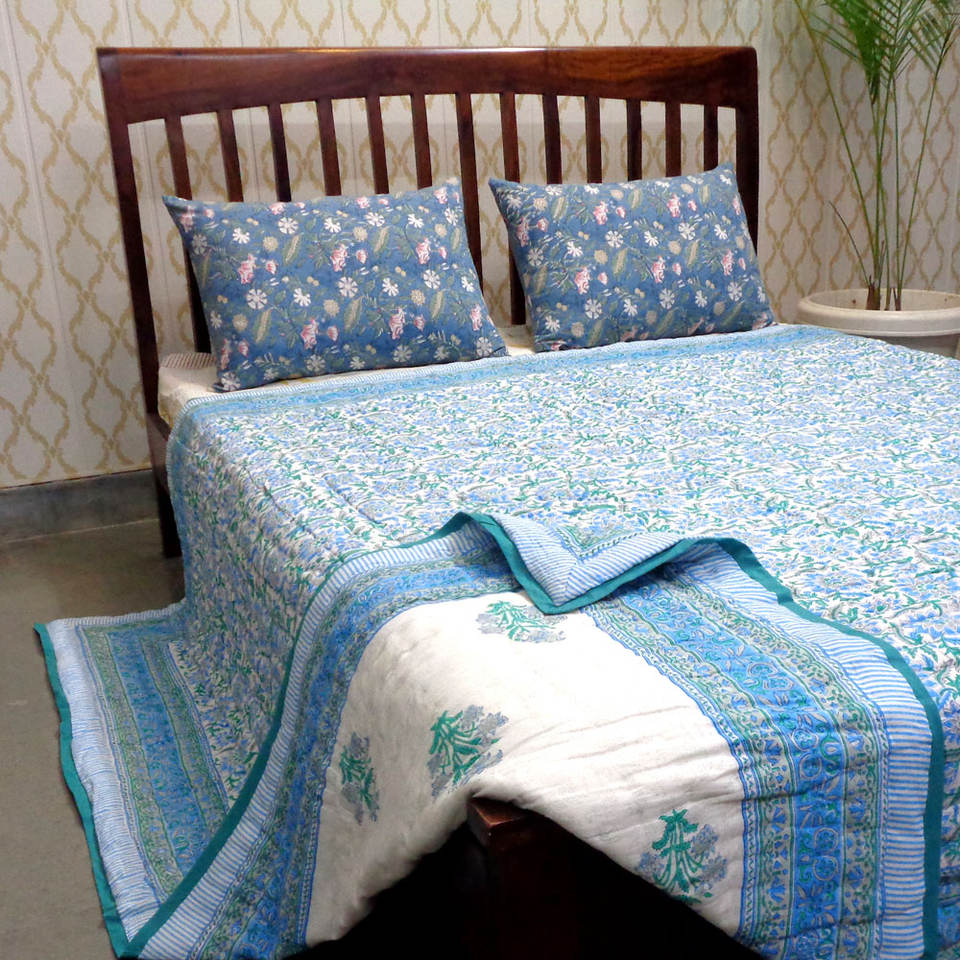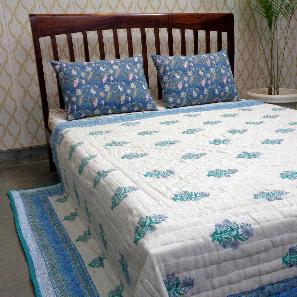 Indian Manufacturer's Organic Cotton Voile Dohar Queen Size Quilt Hand Block Printed Soft Knitted Blanket Low Price for Sale