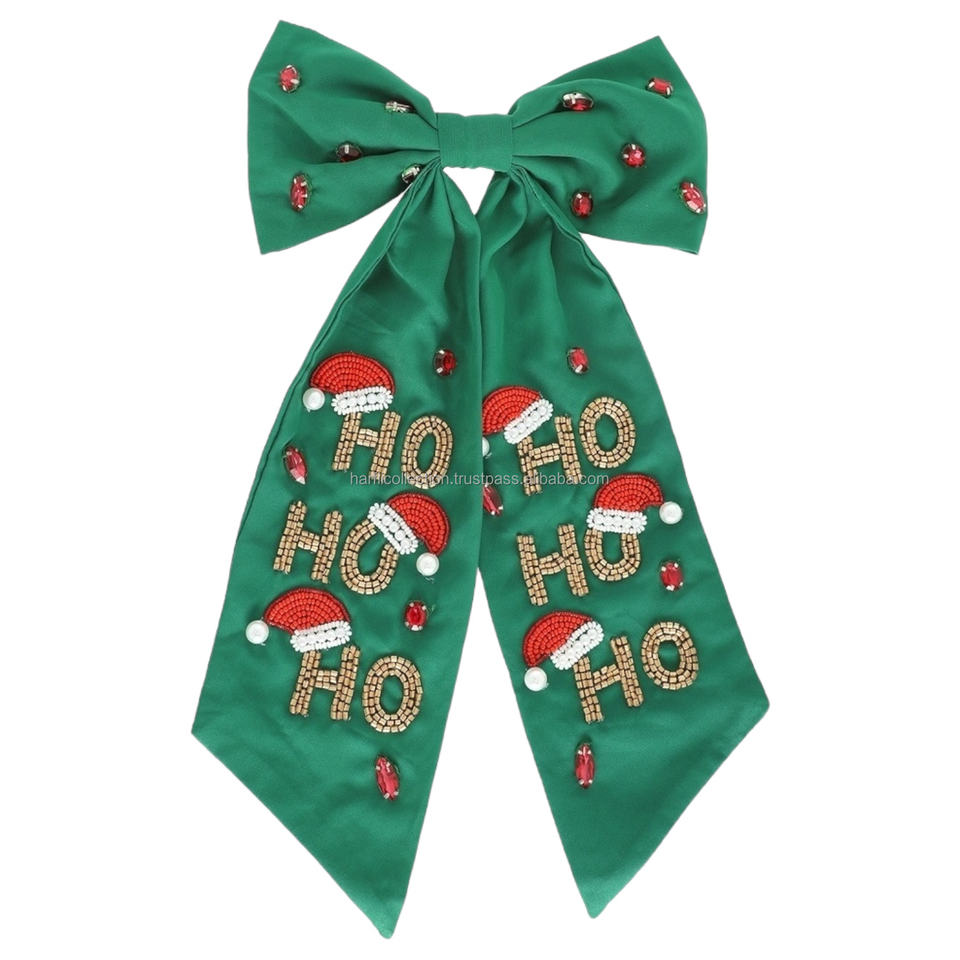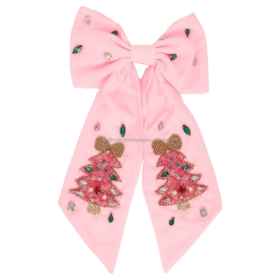 2024 Indian Manufacturing Custom Beaded Hair Bows Soft Christmas Theme Women's Accessories Solid Colors Fabric Hair Clips
