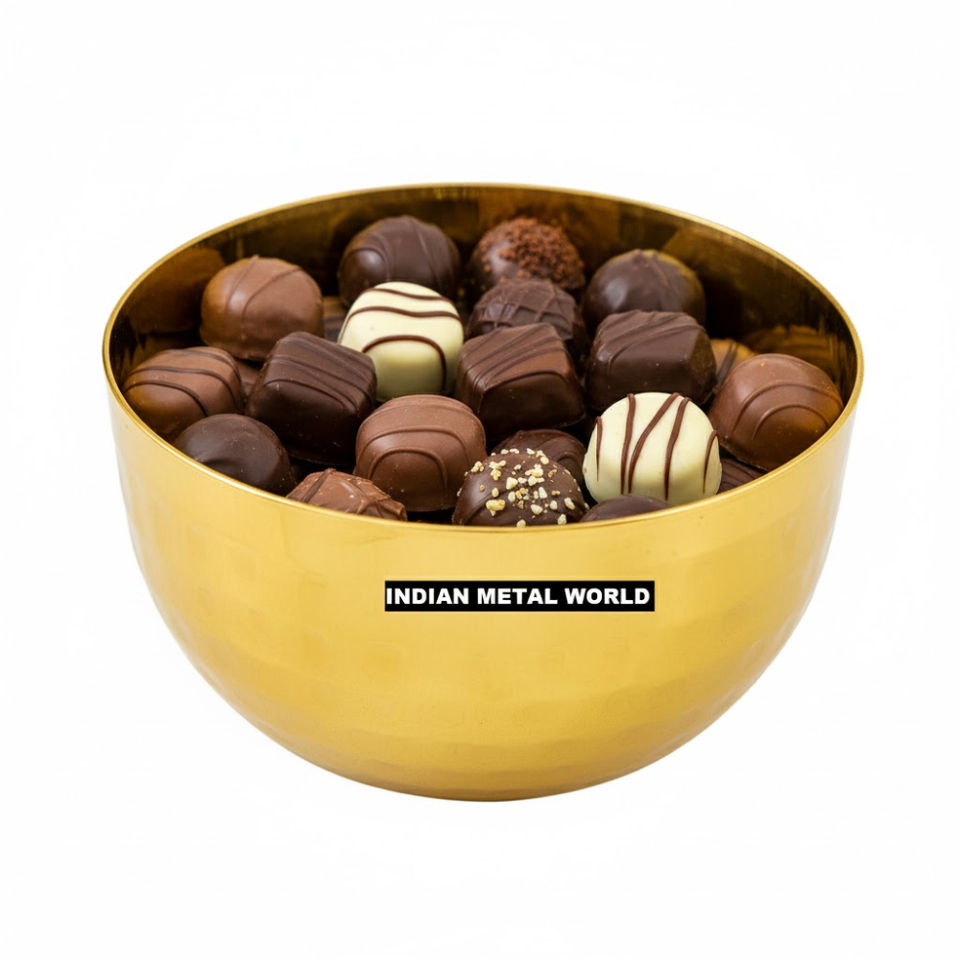Indian Metal World Handcrafted Gold Hammered Metal Serving Bowl Luxury Decorative Brass Candy Dish & Dry Fruit Snack Bowl