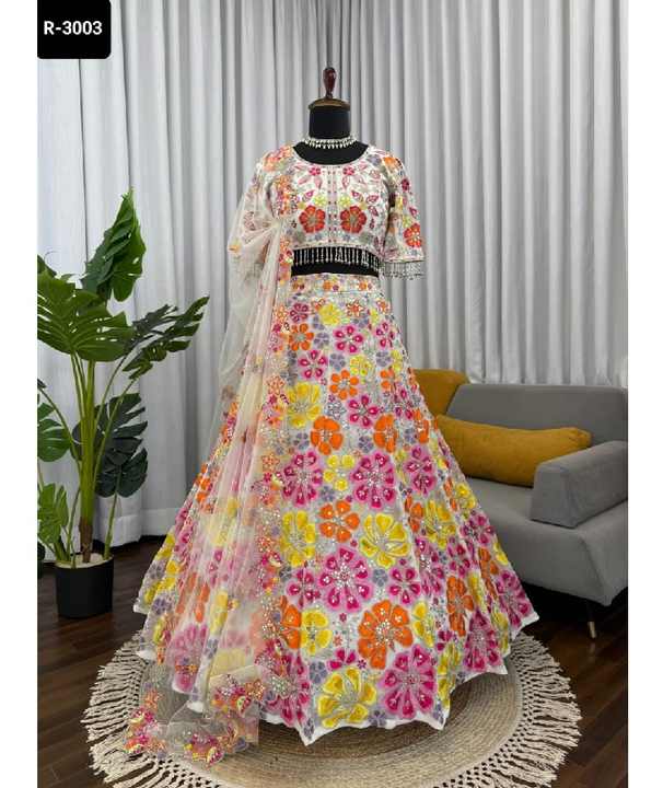 Indian Modern Wedding Wear Faux Georgette Material Lehenga Choli with Thread with Sequence Work and Soft Butterfly Net Dupatta