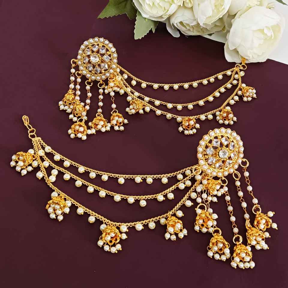 Indian Multi Layer Ear Chain Bridal Jewelry Crystal Kundan Head Chain Tassel Faux Pearl Jhumka Wedding Earring for Women