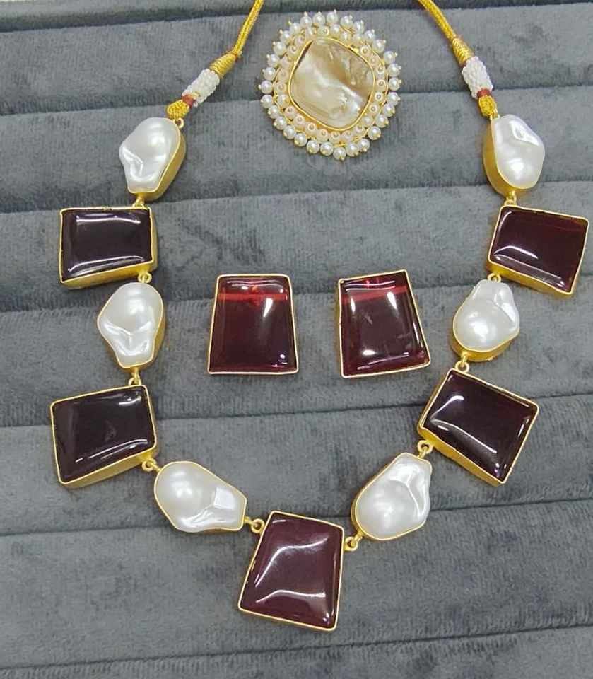 Indian Necklace Set Wholesale Buy Long Pearl Gold Plated Kundan Necklace Set For Women Wedding Party Wear