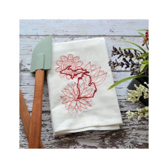 Indian Outstanding Tailor Made 150 Gsm Ultra Soft 100% Cotton Golf Kitchen Non-stick Oil on Demand Leaves Embroidered Tea Towels