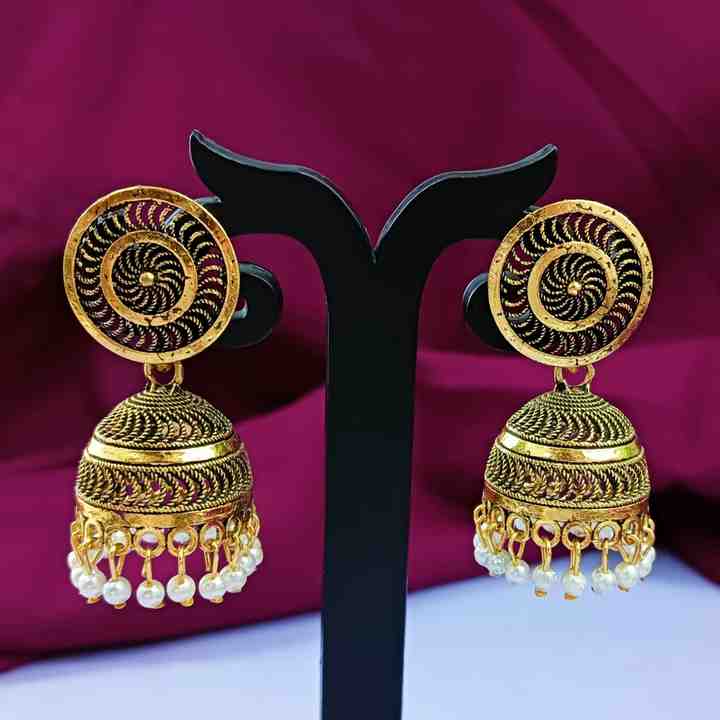 Indian Oxidized Antique Round Stud Traditional Jhumka Jhumki Faux Pearl Dangle Bridal Earrings Indian Fashion Jewelry For Women