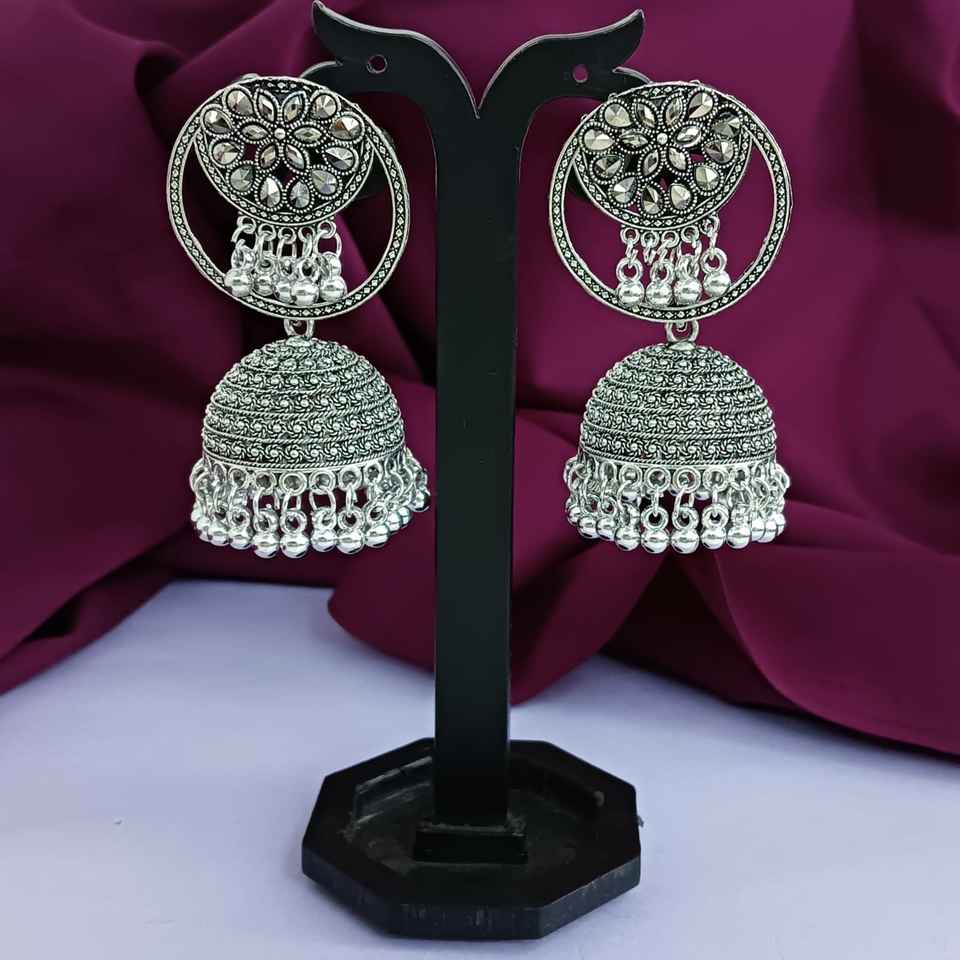 Indian Oxidized Bridal Jewellery Supplier Crystal Foral Round Stud Big Jhumka Wedding Earrings Indian Jewelry Set for Women