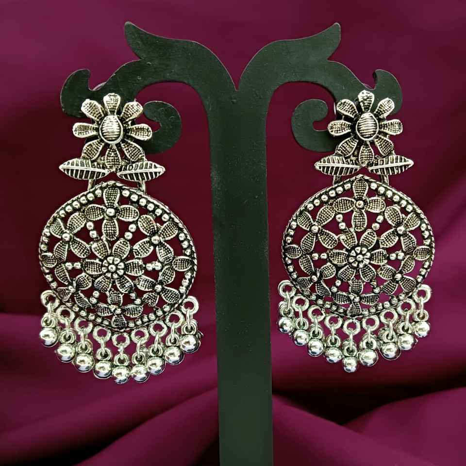 Design:Oxidized antique silver plated chandbali dangle earrings set