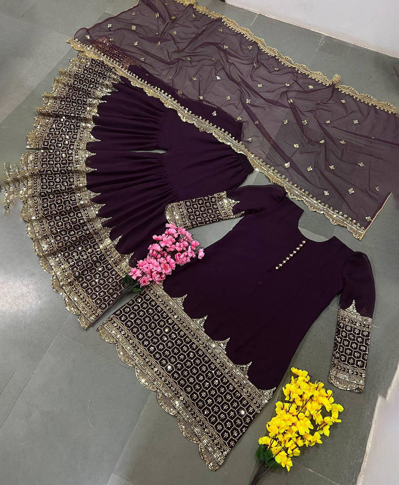 Product Name:Party Wear Look Top , Sharara Palazzo And Dupatta