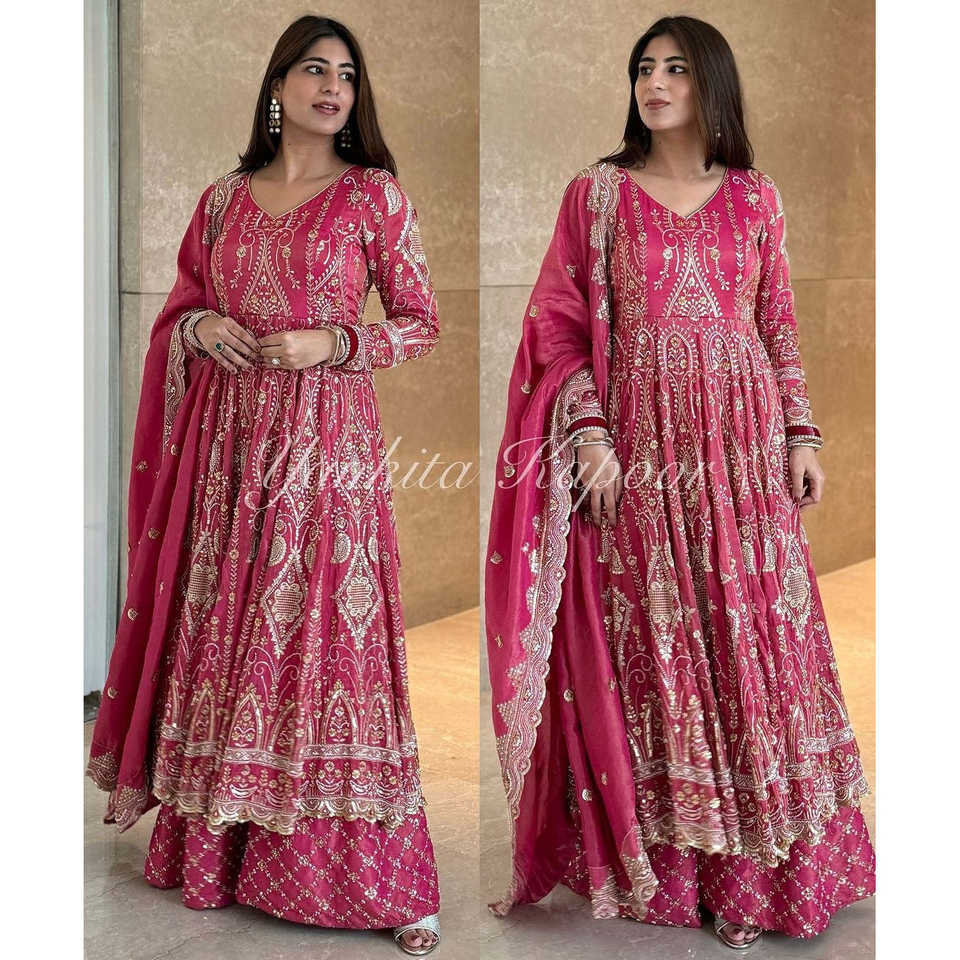 Indian & Pakistani Clothing Party Wear Gown with Sharara & Dupatta for a Stylish Look