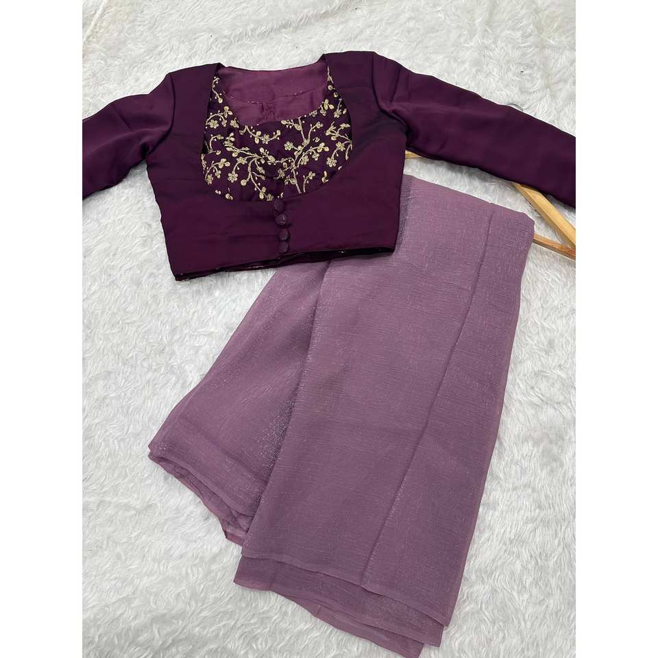 Indian & Pakistani Clothing Sequins & Dori Work Saree and Blouse for Party Wear Look