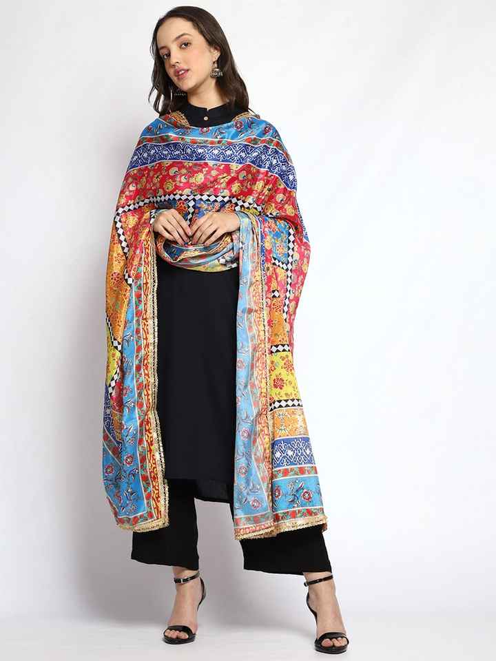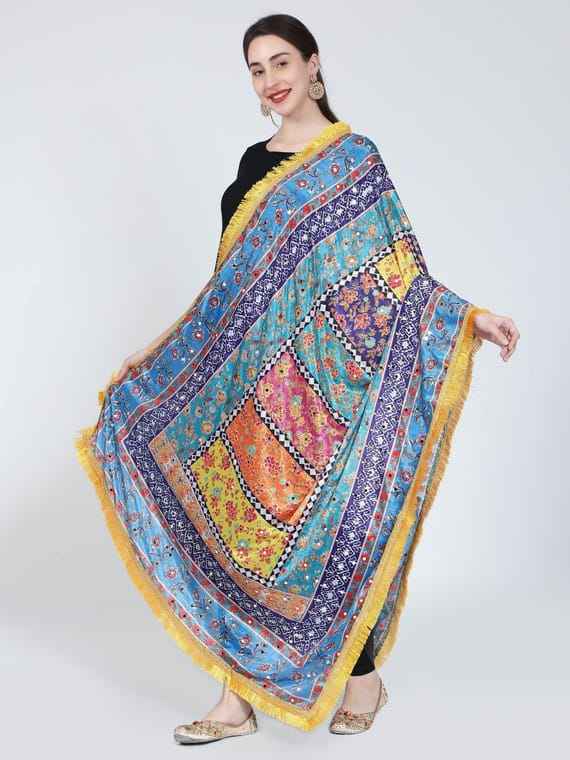 Indian Pakistani Ethnic Polyester Shawls Multi-Color Dupatta Traditional Scarf Handmade Embroidery Lightweight Breathable All