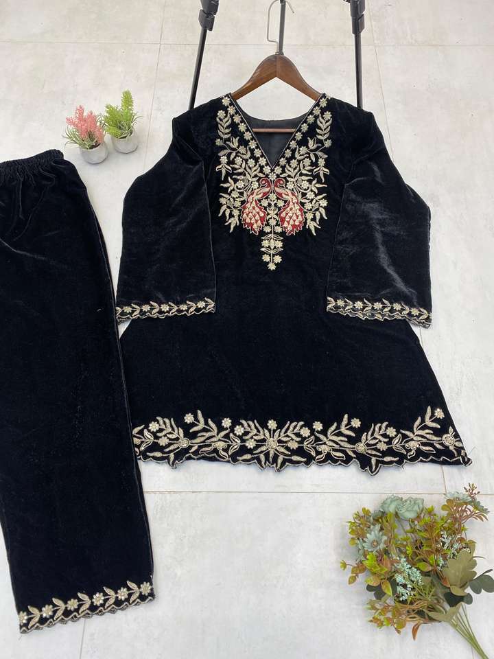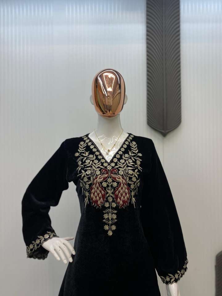 Indian Pakistani Kurti Set with Velvet Fabric Stylish Black Kurti Party Wedding Festive Casual Wear Set Elegant Embroidery