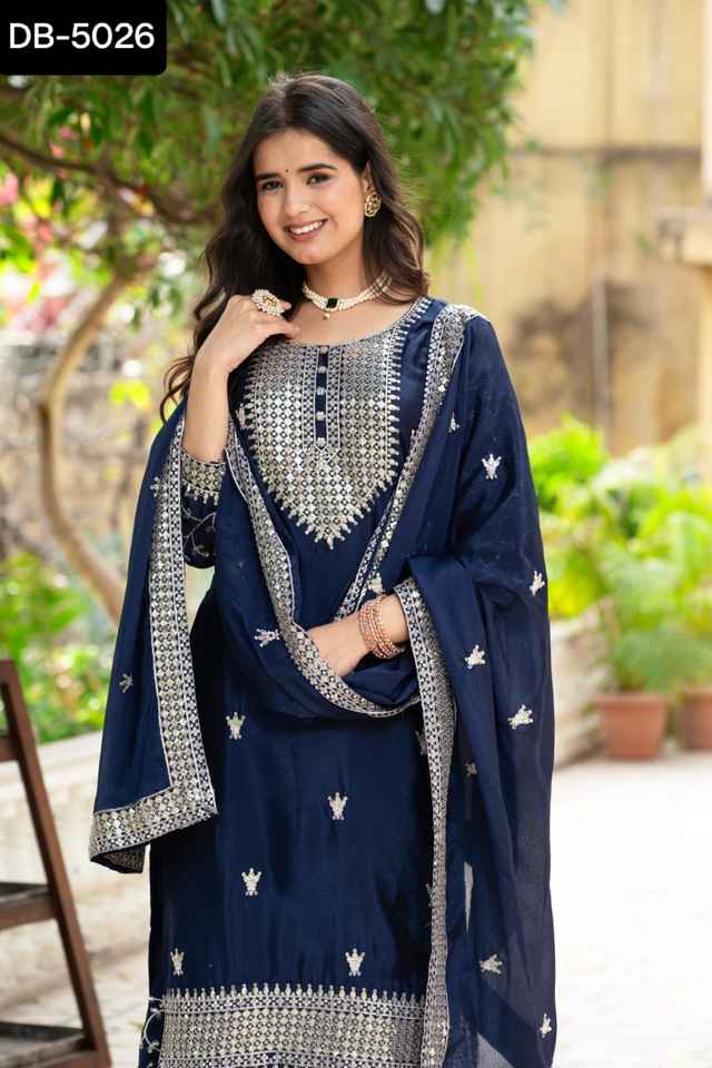 Indian Pakistani Style Salwar Kameez for Ladies with Heavy Embroidery and Stone Work with Embrpodery Lace Border Dupatta Set