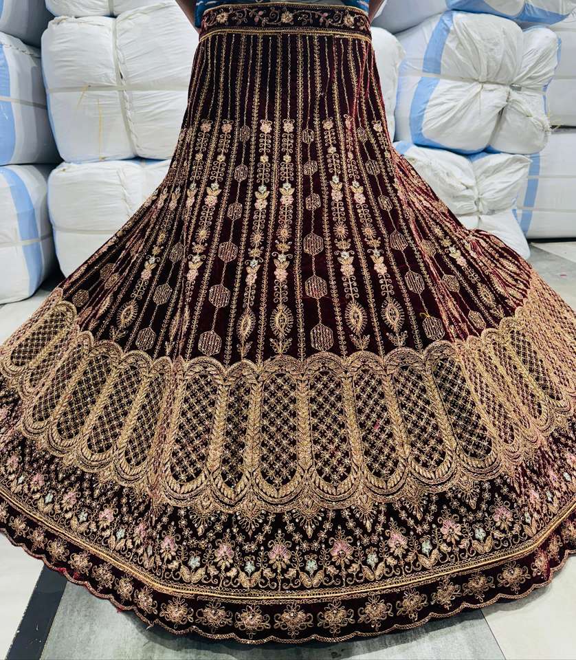 Indian Pakistani Style Women's Wedding Adults Clothing Full Velvet Lehenga Choli Dupatta Blouse Embroidery Work Elegant Wedding
