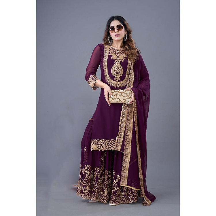 Indian & Pakistani Women's Dresses Embroidered Shirt With Sharara Set Good Quality 3 Piece Evening Events Party Wear Dress
