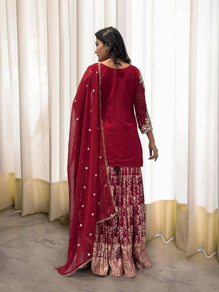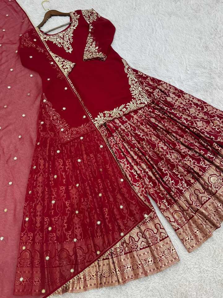 Indian Pakistani fully flair Sharara suit In Georgette fabric with Embroidery And Sequence for traditional wedding occasion
