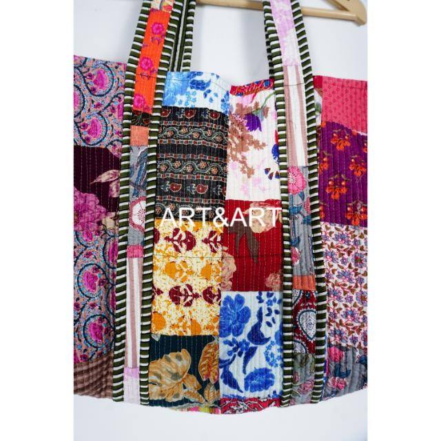 Indian PatchWorks Handmade Quilted Reusable Soft Cotton Large Shoulder Tote Bag with Customized Design and Cartoon Pattern