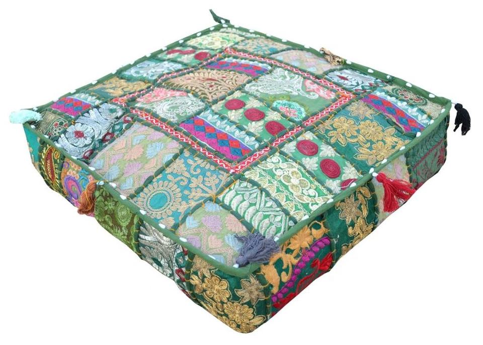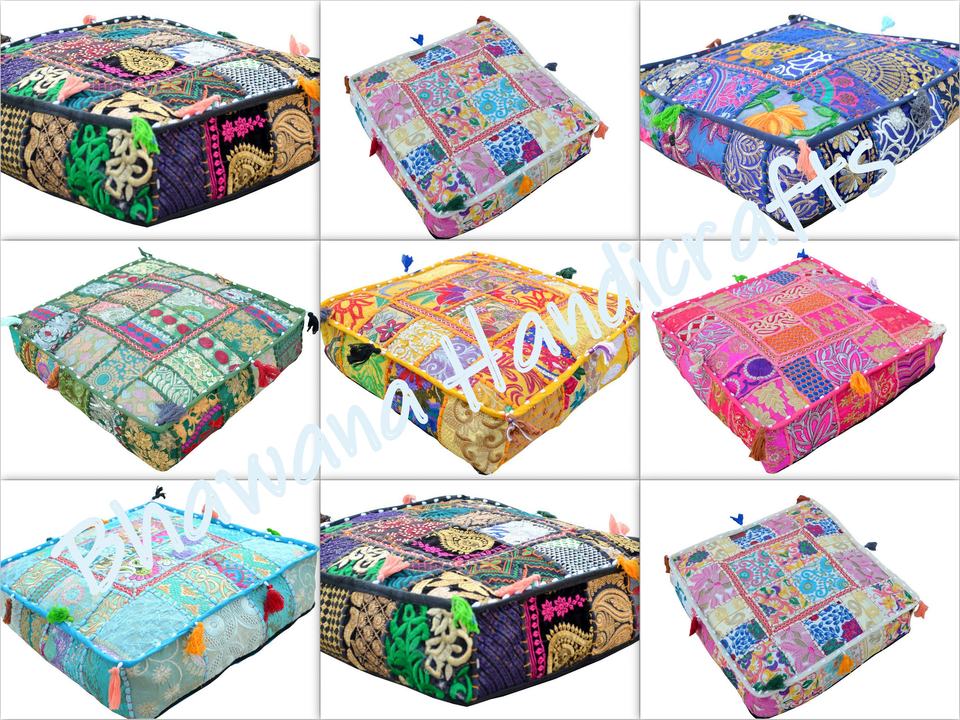 Indian Patchwork Floor Cushion Cover Handmade Sitting Pads Colorful Pillow Throw Embroidered Cushion