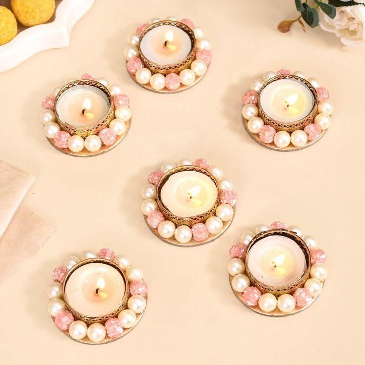 Indian Pearl Tea Light Candle Holder Festive Decor T light Holder Diwali Gift Housewarming Mehndi Haldi Wedding Favor Decoration