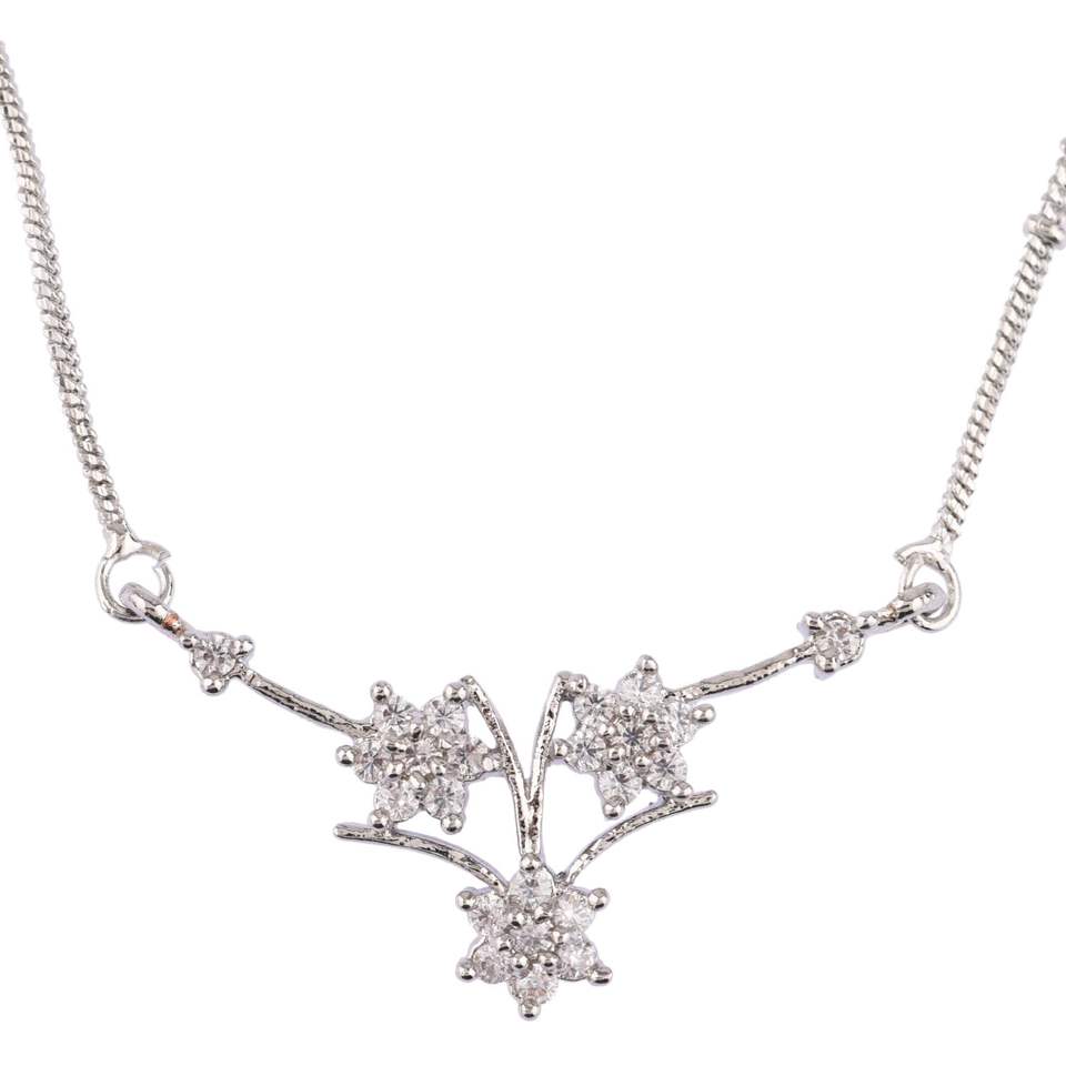 Indian Pendant Jewellery Manufacturers Cubic Zirconia Floral Pendant Necklace Indian Silver Jewelry For Women
