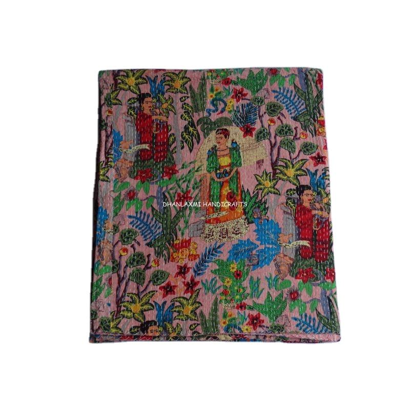 Indian Pink Print Beautiful Home Decorative Wholesale Bedspread Handmade Cotton Kantha Quilt