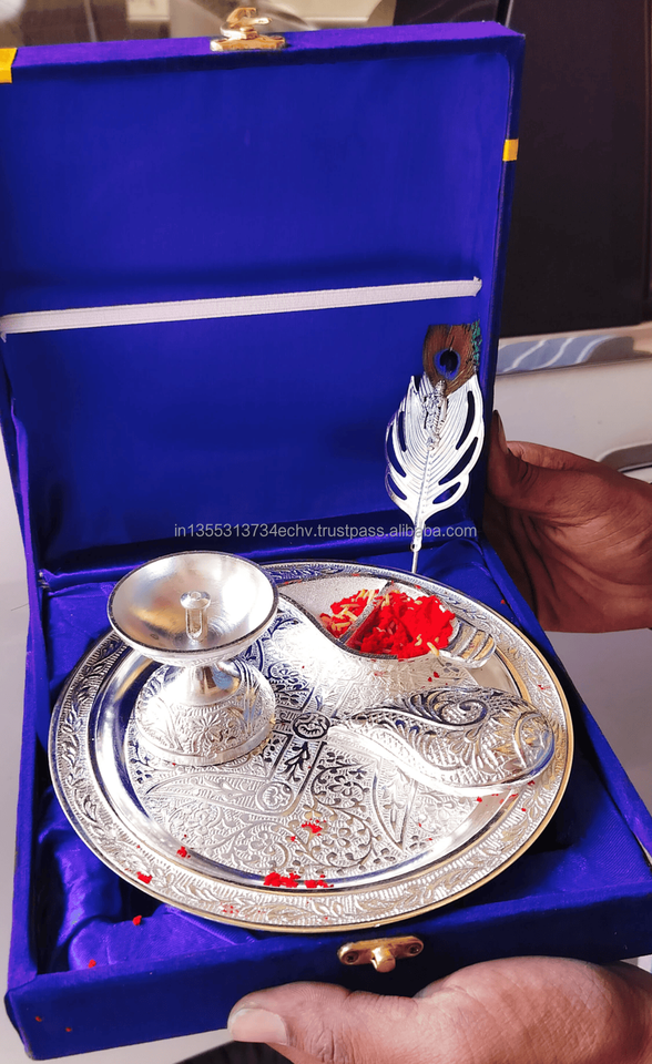 Pack Of:Thali, Akhand Diya, Kumkum Holder, Tilak Stick