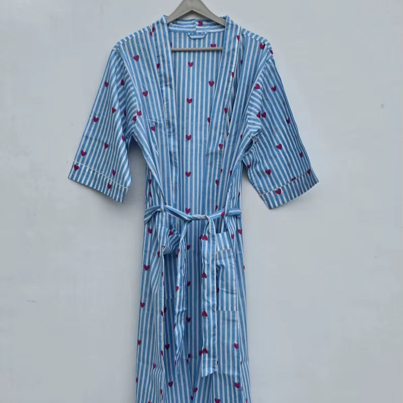 Indian Print Floral Cotton Kimono Robe Women Loungewear Boho Lounge Outfit