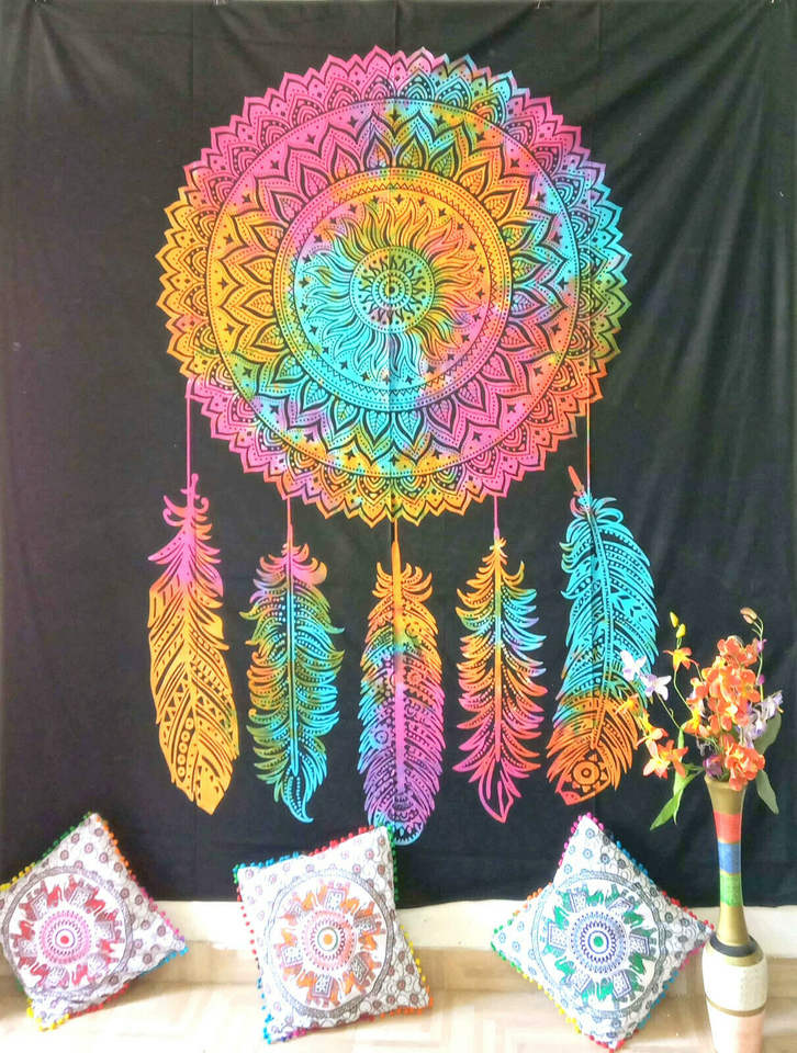 Indian Pure Cotton Tapestry with Mandala Print Psychedelic Wall Hanging for Home Decor Living Room Meditation and Yoga Carpet