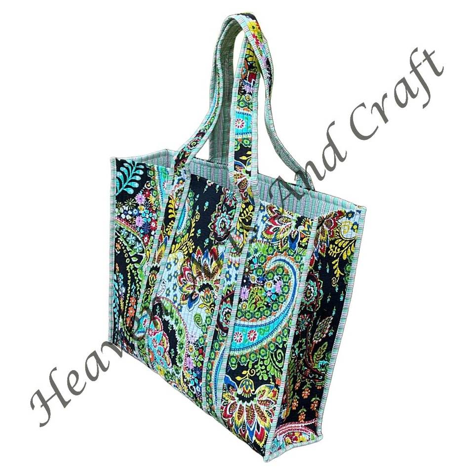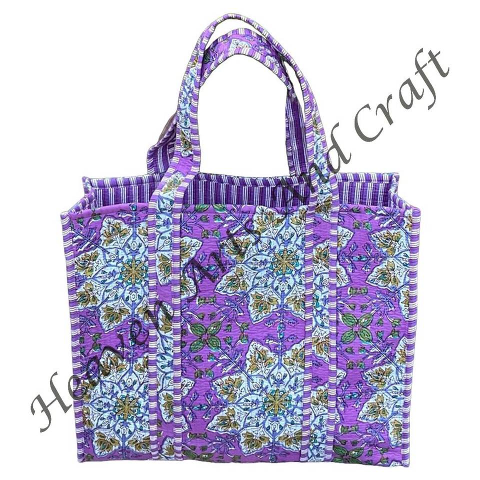 Indian Quilted Tote Bag Hand Block Printed Cotton Handbag Shopping Carry Bag Indian Hand Block Printed Cotton Quilted Shoulder