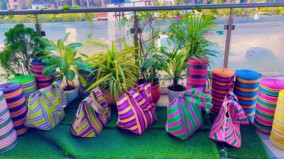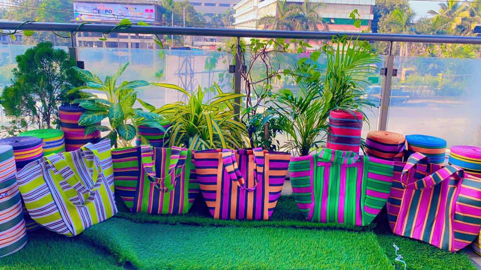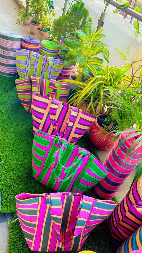 Indian Recycled Nylon Striped Woven Bags Manufactured in India Eco-friendly Multicolor Market Bags and Pouches Made in India.