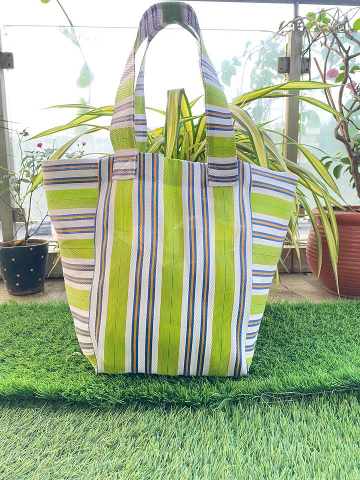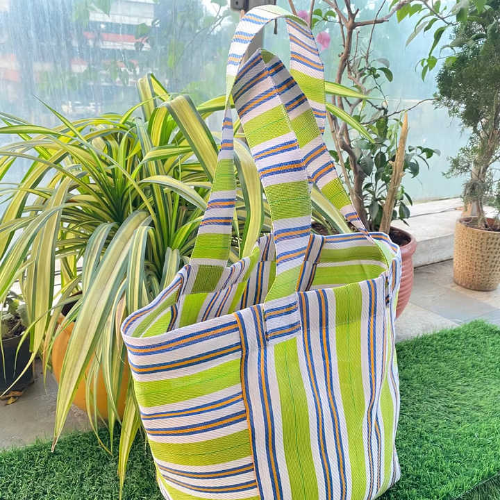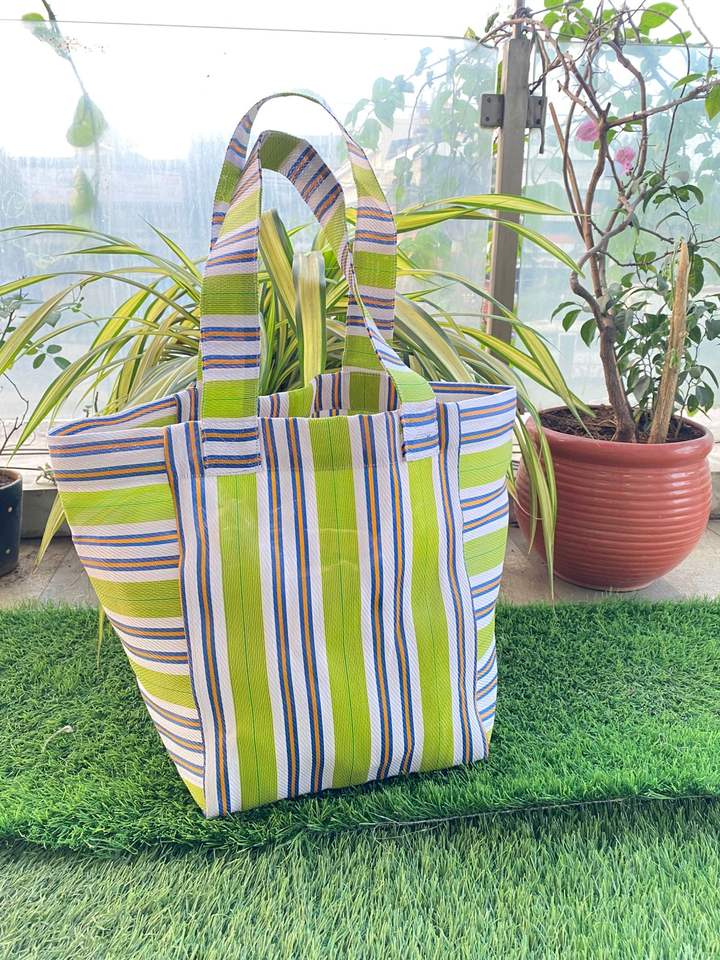 Indian Recycled Nylon Striped Woven Bags Manufactured in India Eco-friendly Multicolor Market Bags and Pouches Made in India.