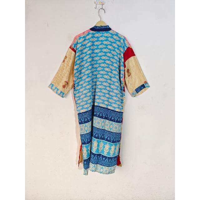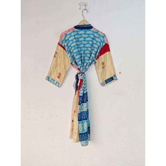 Indian Recycled Silk Maternity Gown Sleepwear Kimono Robe Beach Wear with Belt for Summer Spring Thermal Dressing Gown Sari
